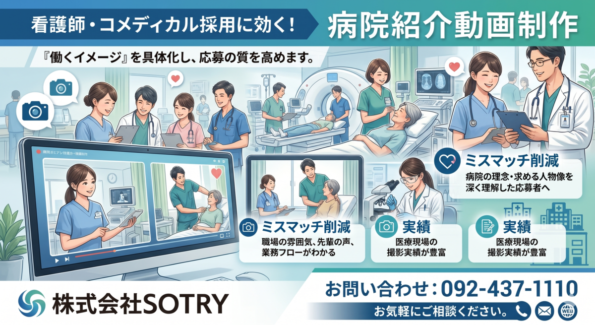病院採用を動画で強化|職場の魅力を伝える|福岡SOTRY 福岡病院 動画 九州病院 ビデオ```